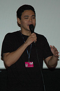 | O realizador Rico Maria Ilarde, no final da projecção de «Beneath the Cogon». |