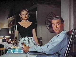 «Rear Window», de Alfred Hitchcock, concebido para uma projecção a 1.85:1 (esquerda). A imagem da direita não traz nada ao filme que o cineasta desejasse. A desculpa da imagem pequena não é aplicável aqui, já que não se amplia nada e a cópia widescreen estará à mesma exacta escala da cópia pan and scan/écran cheio.